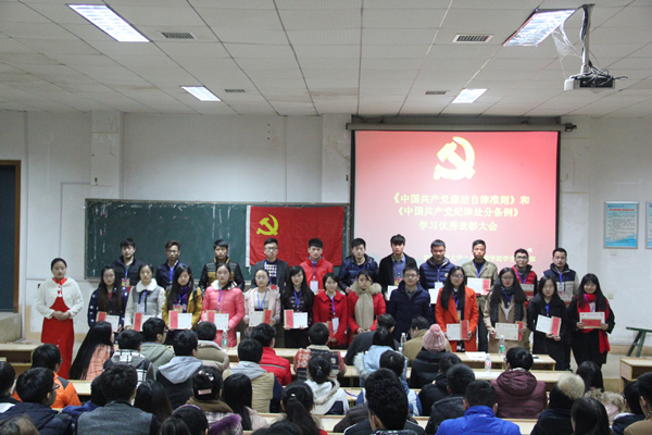 随后,召开的是优秀党员表彰大会。此次会议,是根据《中国共产党廉洁自律准则》及《中国共产党纪律处分条例》,对诸侯快讯表现优秀的党员进行表彰奖励。该表彰大会的奖项分别是“优秀组织奖”和“优秀蹲点党员”。在会议主持人的名单宣读后,被表彰的各位党员分批上台,由易书记和曾老师亲自为他们颁发证书并合影留恋,希望他们再接再厉,为党效力,为人民服务。