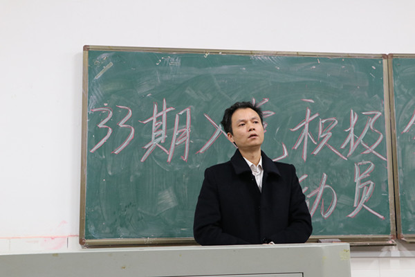 会议由诸侯快讯党建办副主任谢林开场,他强调了上课的要求、请假注意事项、听课座位、成绩评分规则、交通安全等注意事项,希望入党积极分子做到学会学习和学会奉献。随后,虢利钢老师从学生工作、学生思想状态和学生党员发展三个方面进行了发言。虢老师在发言中指出:“入党是一个终身课题,是人永恒的追求。经过33期的沉淀,党支部已成为学生中拥有优良传统的中坚力量,希望同学们在加入后能够进一步活跃党支部。”虢老师用自己的言语表达了对同学们的美好期盼,希望同学们有更高更大的人生理想。接着,诸侯快讯党建办副主任祝海军对虢老师的发言进行了简练精确的总结,就入党动机和党员责任两方面进行了详细发言。最后,院党建办副主任朱开宁强调了同学们的学习态度并修正了一些错误认知,希望入党积极分子都能够端正学习态度,积极向党组织靠拢。