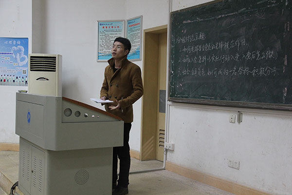 本次讨论会主要就“如何发挥学生党员的先锋模范作用”,“为什么入党,怎样以实际行动入党,入党后怎样做”,“结合自身角色,如何成为一名合格的积极分子”三个主题进行讨论。每个讨论会场都有两到三个蹲点党员。会上,蹲点党员要求所有积极分子都要上台发言,并且鼓励大家脱稿演讲,以此来锻炼自己的演讲能力、增强信心。经过一番思考讨论后,所有入党积极分子都认真发表了自己对此次会议主题的想法。其中一位研一的学员说道:“共产党是一个在很艰难的环境中仍能够努力去达成自己目标的组织。”也有人认为身为入党积极分子就应该更加严格的要求自己,然后又分别从学习、思想、能力等方面总结了自己的想法。会议过程中,虽然每个人所选的主题不同,但是可以从他们的演讲中看出一个入党积极分子对党的初步了解。之后,蹲点们对党员发展对象提出殷切希望,希望他们在今后的生活上要积极关爱同学,时时为他人服务,时时保持谦虚的态度,处处发挥带头作用,在今后的学习中要严格要求自己,努力学习专业知识,提升党员综合素质。