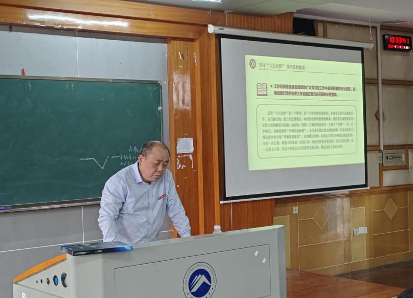 2024年6月6日,ok1188诸侯快讯官方党委书记万文以“恪守六大纪律,筑牢思想根基”为主题,在第五教学楼2-1教室为全院学生党员讲授专题纪律党课。