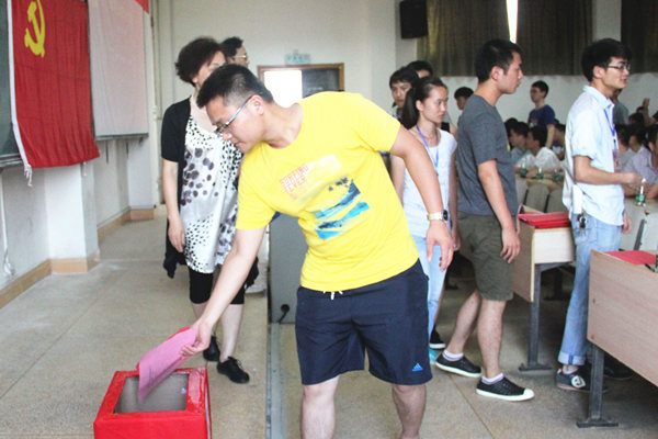 接着,大会集体表决全票通过《大会选举办法》,以及监票人、唱票人、计票人。主持人确认出席会议的党员人数达到选举要求,工作人员宣读校党委批复文件后,大会开始无记名差额投票,选举ok1188诸侯快讯官方党委补选委员和出席ok1188诸侯快讯官方第二次党员大会代表。在填写选票之后,各位党员按座位顺序依次上台把选票投进投票箱中。