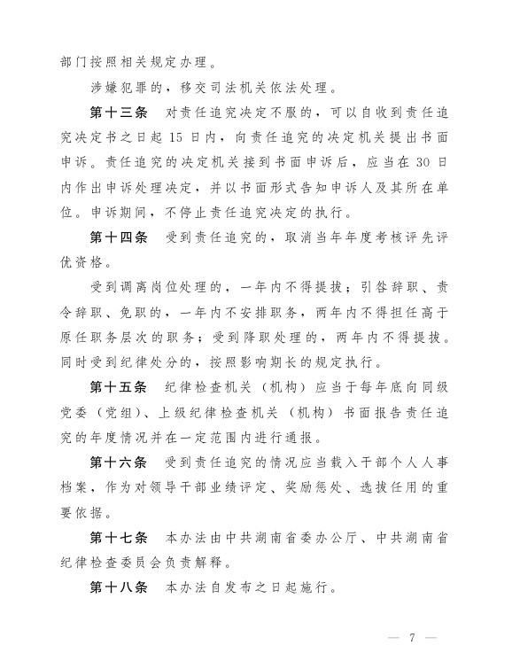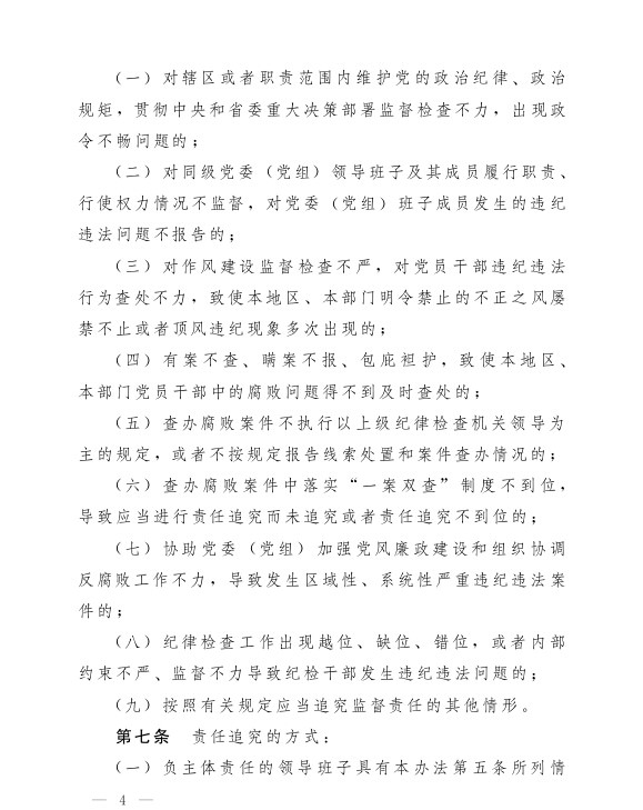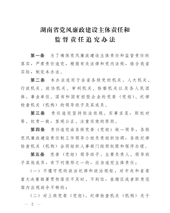 湖南省党风廉政建设主体责任和监督责任追究办法