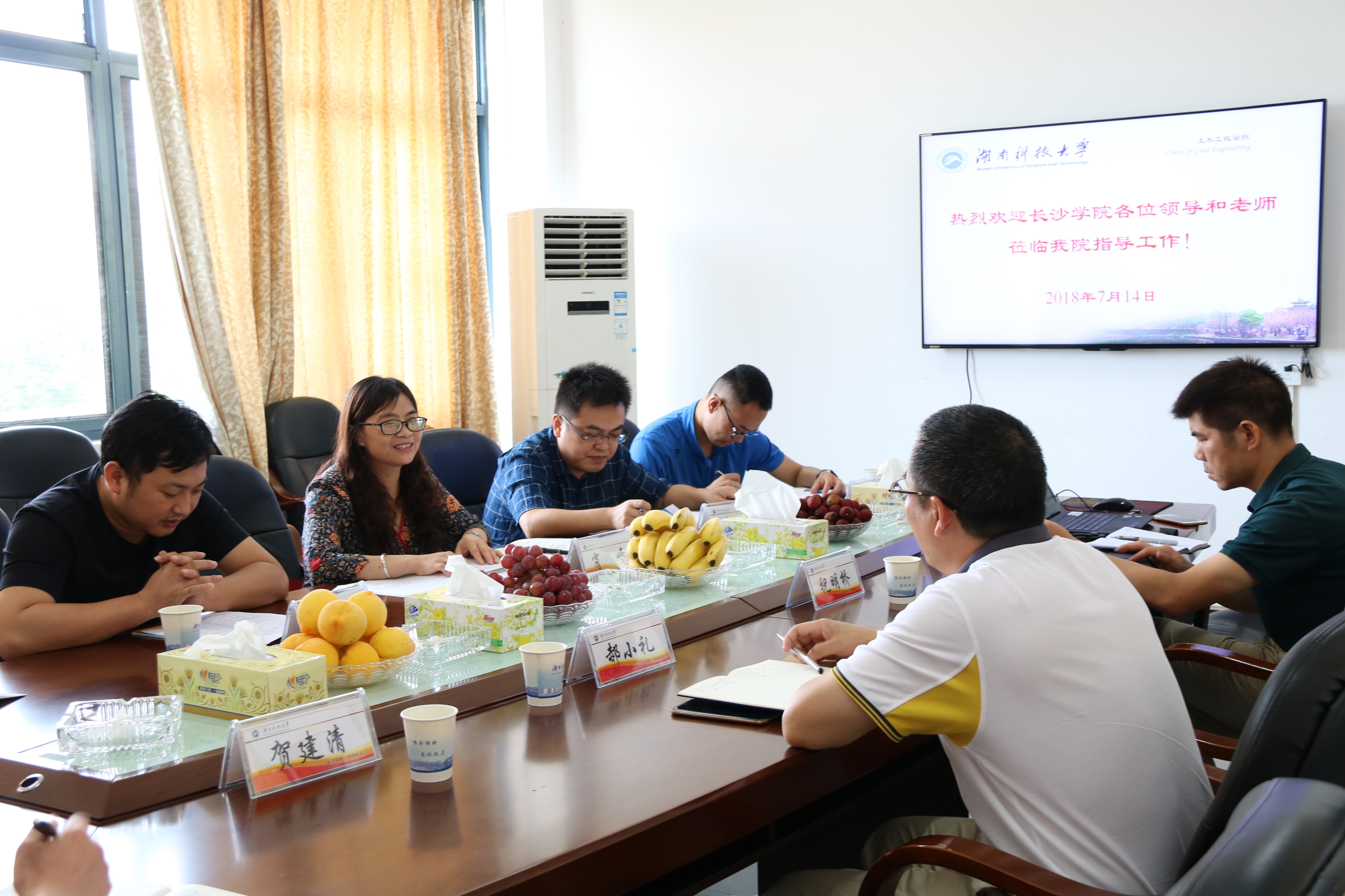 7月14日,长沙学院ok1188诸侯快讯官方肖婧副院长带领教研组一行来诸侯快讯,双方就土木工程专业评估(认证)、人才培养方案、课程体系、实验室建设与管理等方面的工作进行了交流讨论。