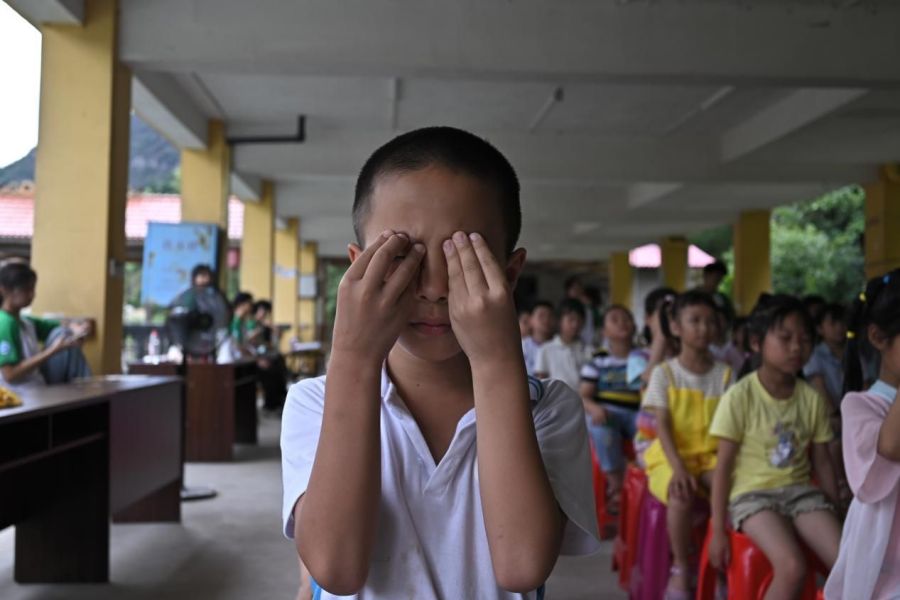 小朋友认真做眼保健操