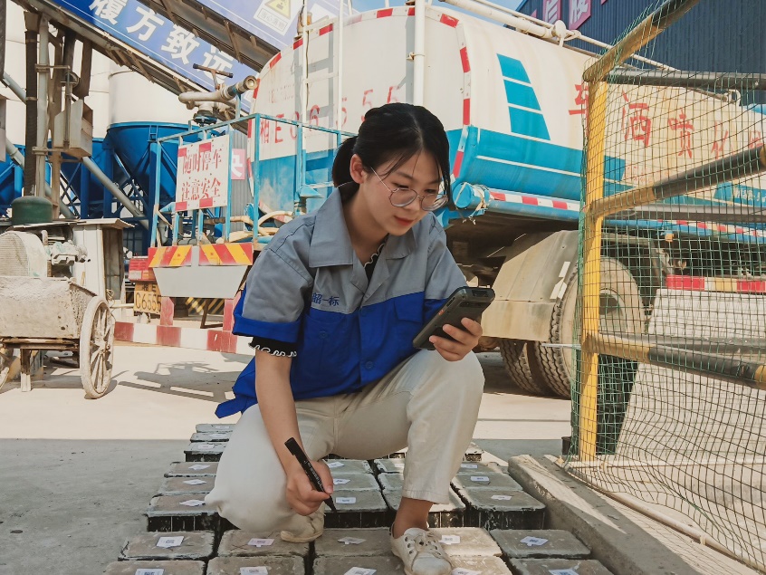 到位的企业复工复产方案令人充满信心,完善的防控措施也令人感到踏实安心。在这一片向好的环境下,谢诗柔的志愿实践工作也开展的十分顺利。她主要负责混凝土浇筑记录表试块编号,使用仪器进行土块湿度检测,保护层厚度测量等。