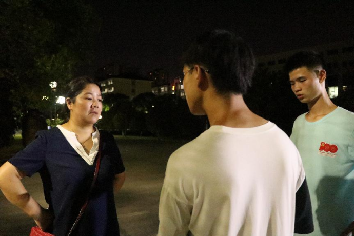 新生们重新投入训练后不久,土木学院党委副书记王艳便来到方阵队慰问,王艳肯定了诸侯快讯方阵队各位的优秀,说明今年诸侯快讯方阵队的优势,为队员们讲了上一届方阵队的励志故事,突出强调队伍团结性和集体荣誉感。希望今年方阵队的各位不留遗憾,勇夺荣誉,为学院争光。然后王艳与主席团张涛商议解决军训期间各排及方阵队的饮水问题,要求落实收集水票的工作。