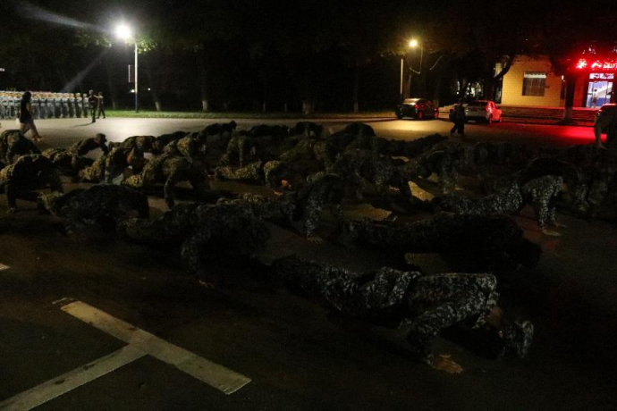 新生们正在做俯卧撑