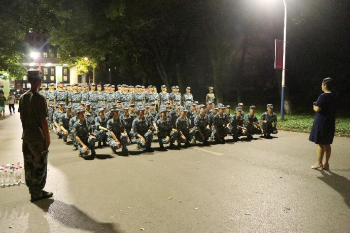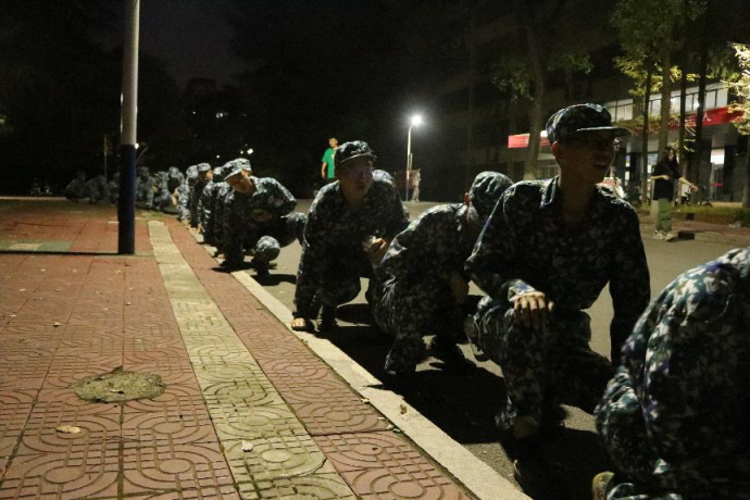 训练一段时间后,各排进行短暂的休息。训练刻苦,感到身体不适的,也得到了值班干部们妥善的关心和照料。休息期间当然少不了才艺展示,他们席地而坐,轮流派人展示才艺“叫你上!你就上!扭扭捏捏像啥样?”“叫我上,我就上?我的面子往哪放?”训练场上洋溢着欢声笑语,充满轻松活跃的氛围。