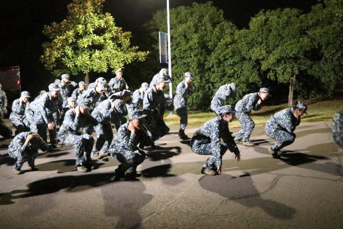 新生们正在练习蛙跳