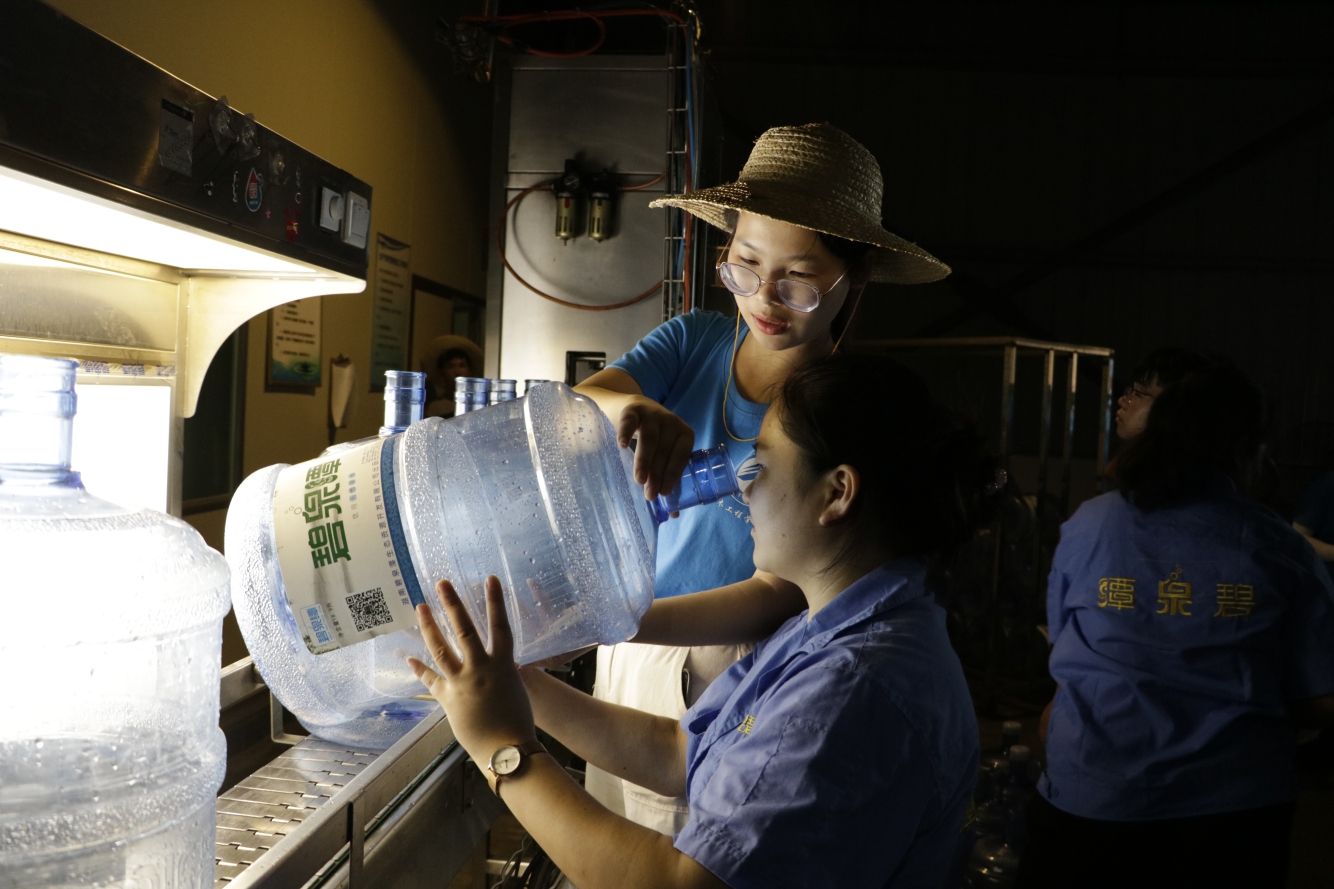 碧泉潭饮用水产基地近几年中在当地传统企业中脱颖而出,敢为人先,短短时间内成为了碧泉产业发展的抓手和龙头。经理刘四石负责管理车间生产与地方销售,在他的带领下,志愿者们参观了采用高新技术的生产流程线。在此期间,志愿者们看到了对水质要求非常苛刻的娃娃鱼。娃娃鱼通常要养在活水之中,水温要保持在20摄氏度左右。由此可见,碧泉潭的淡水质量非常好。
