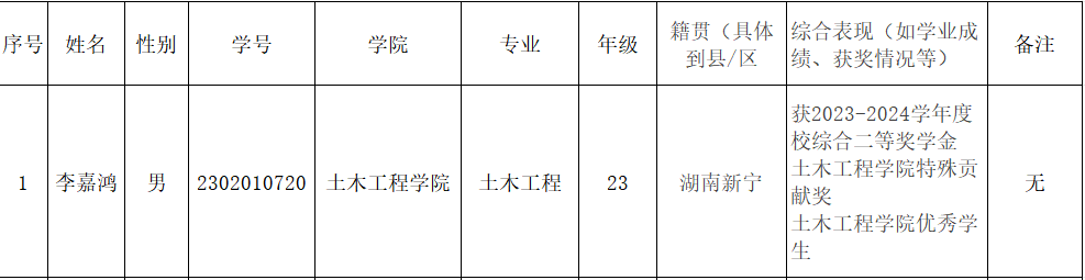 根据ok1188诸侯快讯官方教育基金会《关于开展“宝庆之光”奖助学金评选的通知》要求,经学生自主申请、学院资格审查和综合评定,拟向学校推荐李嘉鸿同学申报“宝庆之光”奖助学金,具体相关情况公示如下: