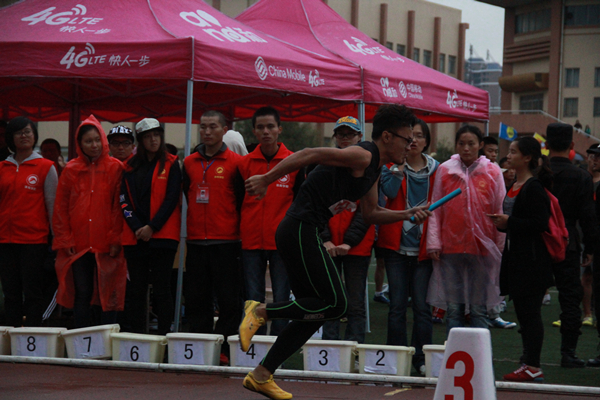 微雨蒙蒙,阻挡不了运动员们奋勇争先的步伐。赛前他们就展现出无限的热情,一个个英姿飒爽,在跑道上做着热身运动,年轻的面容露出自信的微笑,完美地展现出土木学院青春无畏,追求卓越,永不止步的精神。随着一声枪响,运动员们像离弦的箭一样奋力奔跑,蓝色短棒一次次传递给下一位运动员,同时传递的还有不服输的信念和不畏惧的勇气。他们在寒冷的雨中坚持不懈,展现出了土木学子不放弃、肯吃苦的优秀品质。跑道上奋力拼搏的身影带给观众一场精彩纷呈的视觉盛宴,观众们的激情一次次被点燃,呐喊声、欢呼声经久不息,响彻云霄。最终诸侯快讯代表队顺利进入决赛。