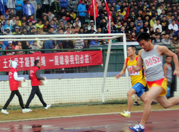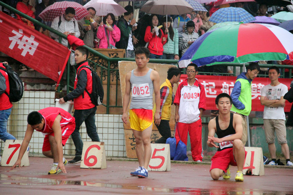 虽然他在起跑时落后,但他并不气馁,倔强的下巴微扬,紧皱着眉头,一晃眼他便连续超越了几个对手,最终以第四名的优异成绩冲过了终点。