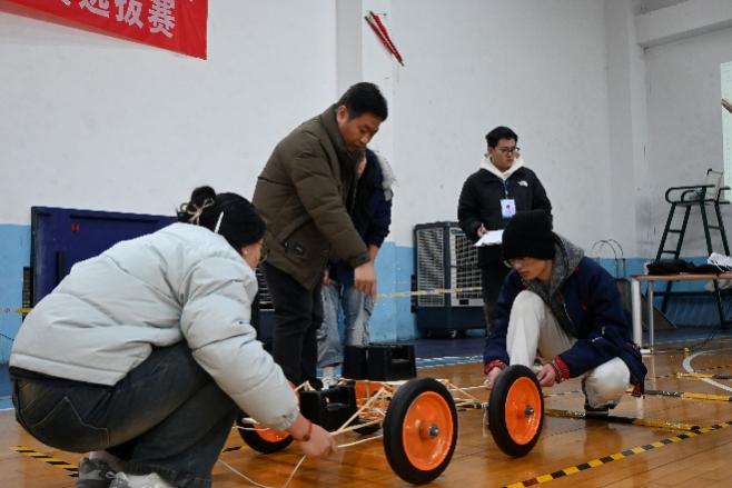 比赛现场气氛紧张热烈。入围校赛的各支队伍依次进行作品展示与加载测试。荷载逐级施加的过程中,模型的受力表现成为全场焦点。部分作品凭借科学的结构体系与精细的制作工艺,成功承受高强度荷载,赢得现场阵阵掌声;个别模型在测试中出现失效情况,参赛选手沉着应对,清晰阐述设计思路与优化方向,充分展现出良好的工程素养与竞赛态度。