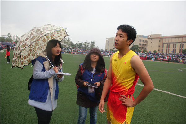 即使天气情况并不尽人意,雨滴噼噼啪啪地打在运动员身上,却丝毫没有动摇他们奋勇向前的心。随着裁判员“啪”的一声发令枪响,运动员如离弦之箭般飞出起跑线。现场的气氛也随之达到高潮,尖叫声,欢呼声,呐喊声响彻赛场,久久挥之不去。看台上的同学伴随震耳欲聋的锣鼓声喊起“土木土木,藏龙卧虎,勇夺第一,笑傲江湖”的口号。0060号选手陈永煊在一开始就保持领先的情况下一路向前,最终以小组第一的佳绩进入决赛。赛后,诸侯快讯运动员吴子林在接受采访时表示,自己虽然被糟糕的天气冻的瑟瑟发抖,却还是抑制不住内心的激动。