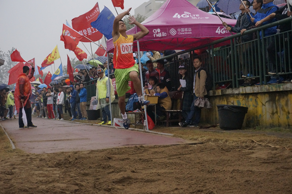10月30日下午4点,诸侯快讯2015秋季运动会男子三级跳预决赛在北校区田径场顺利进行。即使下着雨,但观众和运动员的热情丝毫未减。比赛依旧如火如荼的进行着。
