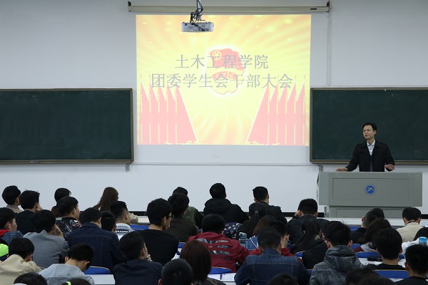 会议开始后,院学工办主任虢利钢就新学期工作向大家提出了五个着重需要提高的能力:交际能力、分析判断能力、决策能力、组织能力、创新能力。他结合实际对如何提高个人素质,如何提高情商等问题给学生干部们提供了许多宝贵建议。随后,学生会主席赵永正对上学期的工作进行了总结。他指出团委学生会部分成员成绩较差,个别有违纪情况,工作时奉献精神还不够等问题。同时,他也就上学期存在的问题提出了相应的建议。他指出:学生干部应以身作则规范自身行为,积极搞好成绩提高自身素质,明确自己的职责,树立牢固的服务意识。之后,常务第二副书记胡晴发表讲话并与现场的人员进行了互动。她通过自身经历和体会鼓励在场的学生干部要学会改变自己,始终保持自信,勇于尝试,不断努力。最后上台讲话的是团委第一副书记邓婉珍。她对大家愈加成熟的变化表示欣慰,并向在座的学生干部们分享了一句话:只此一生,何必从众。她期望学生干部们能够更加出色,活出自我。大会最终在一片掌声中圆满结束。