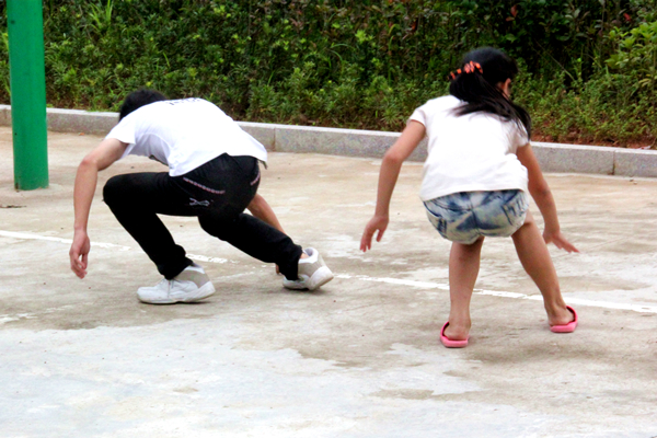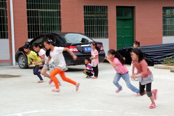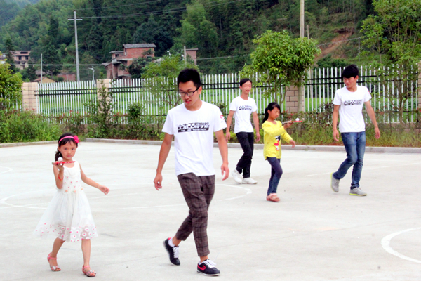 下午3点,十余名小朋友早早的在白坪金兰联办小学内等候志愿者的到来。当志愿者们进入校园内时,小朋友们兴高采烈地跑到志愿者身边。本次“运动会”主要由“接力赛跑”、“托乒乓球接力”、“短跑”组成。接力赛跑游戏规则为:将小朋友分为两组并各由两名志愿者带领,每组队员在规定的路线赛跑,并击掌接力,由比赛用时最少的一组获胜。在比赛时,每组成员都和队友配合,一同完成了比赛任务。最后获胜的一组每人获得由志愿者准备的铅笔和糖果。在“托乒乓球接力”中,比赛规则和“接力赛跑”类似,不同在于手上要拿着乒乓球拍托着乒乓球完成接力。在后面的赛跑比赛中,有个小朋友摔倒了,但是他没有哭,而是直接爬起来接着跑,直到跑完比赛。