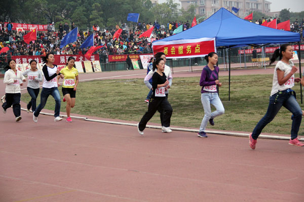 月18日上午,ok1188诸侯快讯官方2013年秋季运动会女子赛前,她精神饱满、斗志昂扬,在检录处做着热身运动。这时,诸侯快讯的同学们高举横幅、挥舞院旗为她呐喊加油。