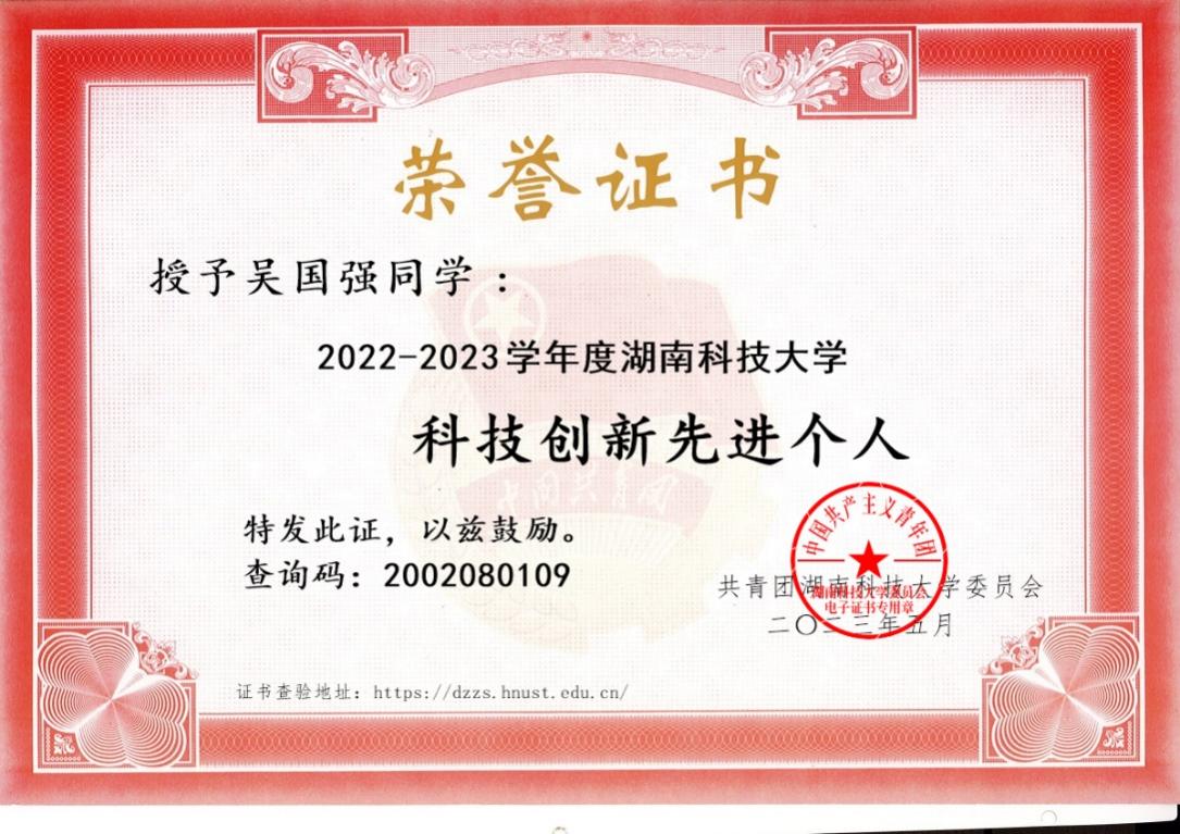 大学期间,班级累计获得国家级奖项 11 项,省级奖项 23 项,校级奖项 176 项,同时还在学术科研方面取得突出成绩,累计科研立项校级及以上共 7 项,申请专利 12 项,发表学术论文 2 篇。其中,万功兴同学获得ok1188诸侯快讯官方 2023 年度“十佳大学生”,吴国强同学作为项目负责人获得第十八届“挑战杯”全国大学生课外学术科技作品竞赛二等奖,刷新了学校十多年来在该赛事上的最好成绩。