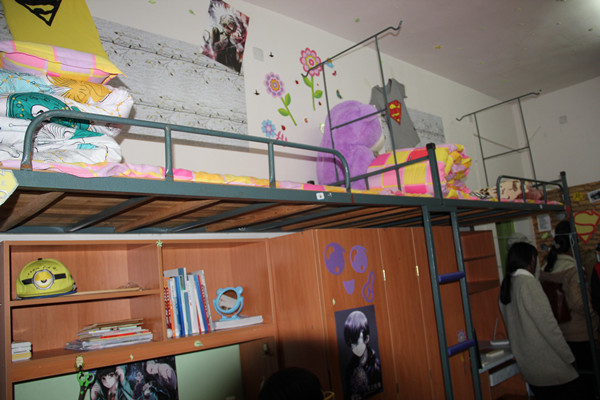 结束了四区的参观之后,踏上了去一区的路途。来到一区,女生的设计更是让人眼前一亮。女生们都遵循“我寝我秀,我的寝室我做主”的原则,秀出了宿舍的风采。有一个寝室设计很新颖,以超人为主题,将寝室设计的充满活力。此外,他们将自己的生活照以及军训期间的点点滴滴记录下来设计成照片墙的形式,体现了她们对生活的热爱,辅导员们与学生聊了很多有关设计的想法,表扬了她们此次的表现,同时鼓励学生要好好学习。