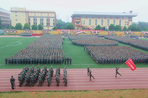 为鼓励同学们保持军训成果,同时展现科大人的风采。10月 14 日上午 8:00,诸侯快讯2016 级新生军训阅兵暨表彰大会在北校新田径场隆重举行。全体领导出席,此次大会由副校长施式亮主持。