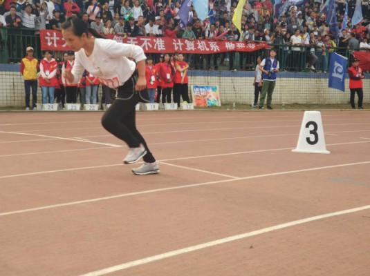 伴随着口哨声与击掌声,参加本次运动会女子400米预赛的运动员们陆续跑上赛道。她们都精神抖擞,胸有成竹,那气势丝毫不输男选手。选手们摆好姿势,手贴赛道,一个个目光紧盯前方,紧张的气氛不断上升。“砰!”比赛开始。她们像离弦之箭飞奔而去,口哨声,加油声高涨着,此起彼伏。周媛一开始就稳定在队伍前三,比赛后半程奋力加速,超越了前两名选手,最终夺得预赛小组第一。此外,另一小组的谢婷也夺得小组第一。她们用自己的行动与优秀成绩向外界展示了土木学子勇攀高峰,追求卓越的良好风貌。女子比赛刚结束,男子400米预赛紧接着到来。赛场上,他们挥动着的手臂,稳健的步伐,扬起的尘土,都是他们对更快目标的渴求。赛后,选手汪绍先和孙富锟表示:“由于发挥不好,训练量不够,没有发挥出最好的状态。但还是不断坚持,力求做到最好。”