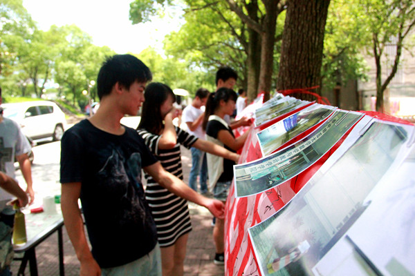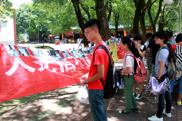 白云当空,艳阳高照,前往美食城的路上人山人海。此次活动以照片宣传,学生联合签名等方式来加强诸侯快讯学生诚信教育,提高学生的诚信素质,增强学生的诚信意识。签了名的同学还可以获得可口的小零食,这些别出心裁的方式使在场的同学和老师,及路过的行人积极地参与到其中。场面热闹无比。