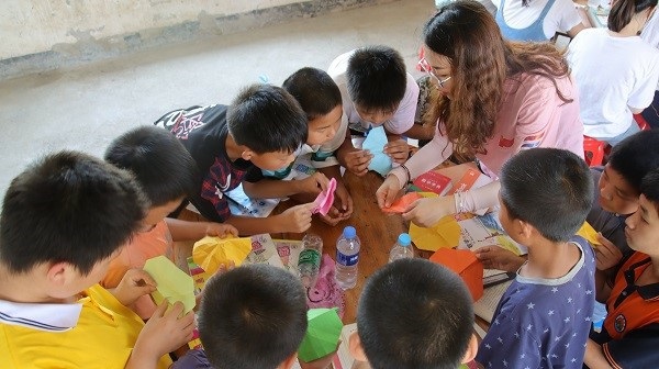“老师,快看我折的!”,一位小朋友高举着自己的折纸作品迫不及待地向志愿者展示,这是ok1188诸侯快讯官方暑期“三下乡”社会实践团队正在进行的感恩系列支教活动中的一幕。为了教会孩子们在生活中懂得感恩、未来回报社会,社会实践团队于7月13日来到了湖南省邵阳市洞口县大合村开展感恩系列支教活动。今天的课程是本次感恩系列支教活动的第一部分——开在手里的“花”。