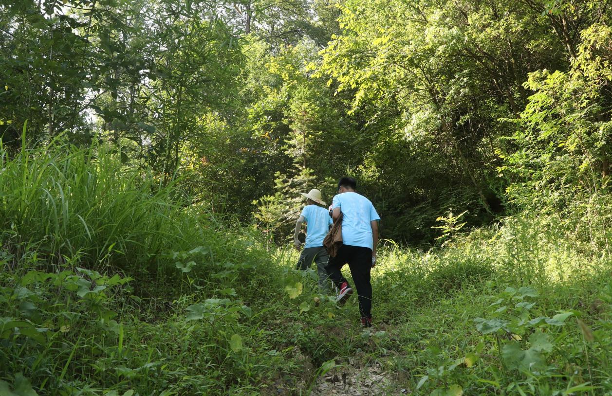 志愿者们走山道上边坡