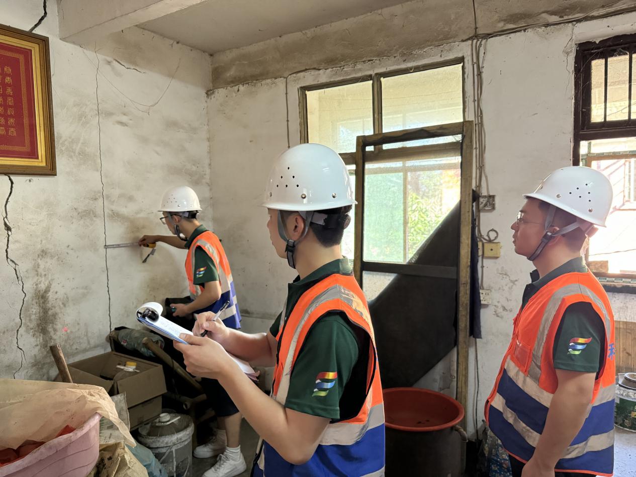 社会实践服务过程中,团队成员在指导老师的带领下,充分发挥专业知识,践行科技为民,守护乡村安全。房屋检测组开展入户勘查工作,通过观察和测量,细致检查房屋墙体的裂缝和倾斜情况,从专业的角度判断房屋的结构安全性,为村民住房安全提供参考建议;桥梁检测组通过精密仪器认真测量桥面平整度、裂缝扩展度及桥梁结构变形量,评估路桥的安全状况,为保障村民出行顺畅提供专业建议;边坡组进行边坡稳定性评估并完成道路受损检测。操作全站仪对边坡进行三维坐标测量,通过高精度的测绘数据构建边坡形态模型,为边坡稳定性评估和道路风险预测提供科学数据支撑;能源检测组实地走访生产企业,通过交流和探讨,为企业节能降耗提供优化建议。同时,开展居民能源使用问卷调查,了解当地居民能源使用情况,并普及清洁能源知识和节能技巧;水质检测组采集多个与民生紧密相关的原始水样,通过精密试纸和专业仪器,全面检测水体的各项指标,为当地水质安全提供科学依据。