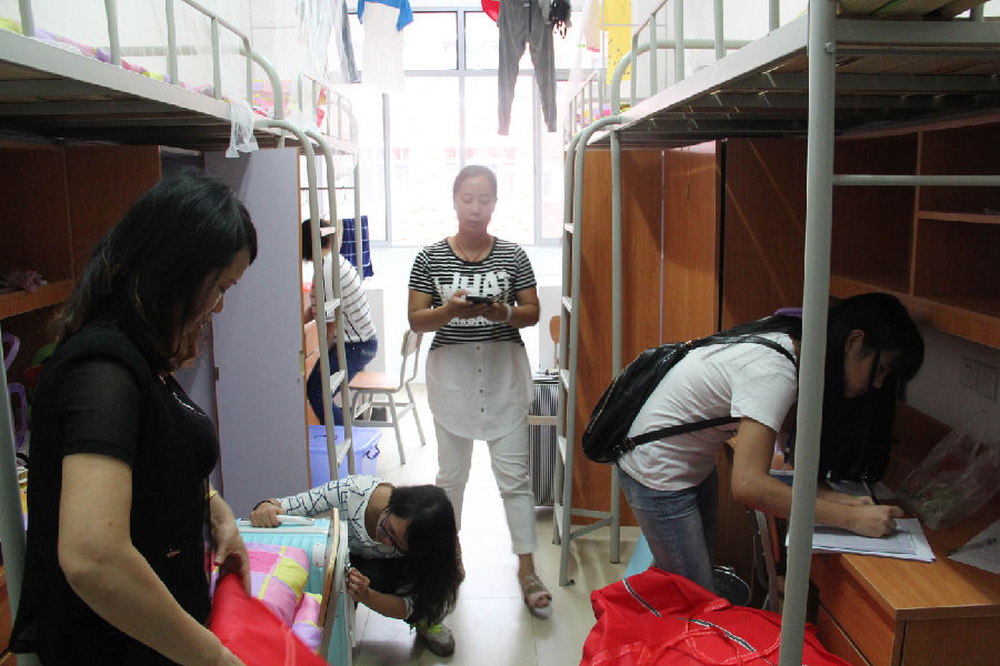 昨天,基于学生会和志愿者们的辛勤忙碌,来到学校的新生们基本已入住自己的寝室。当我们来到八区新公寓诸侯快讯女生寝室时,看到家长和同学们正在忙碌着打扫寝室,整理自己的床铺、卧具等。还有我们的学生会工作人员为家长解答疑惑,细心讲解入学报到还需办理的手续,以及还需注意的情况。还有志愿者们忙碌的身影,带领同学们找到自己的寝室,帮助同学们整理内务,同时也不忘交待开学期间要注意个人财产安全,面对推销物品主观选择,不盲目,要勇敢说不。面对学弟学妹们对新环境的懵懂而提出的有趣问题,志愿者们一一耐心解答。相信初来乍到的他们,开学伊始就学到许多经验,以便在接下来的大学生活中,有更充足的准备,更快的适应大学生活。