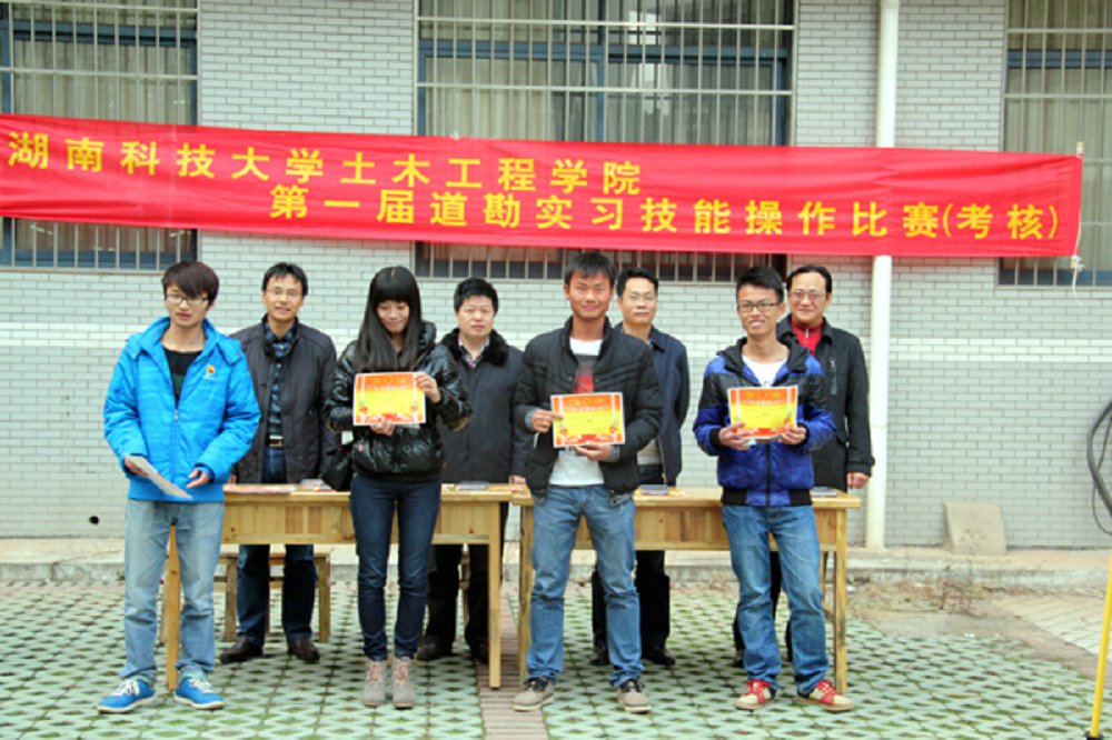 为激励广大学生刻苦学习,全面提高自身素质和创新能力,培养德、智、体全面发展, 12月5日下午一点半,诸侯快讯第一届道勘实习技能操作比赛在土木楼隆重举行,此次比赛深受学院各级领导、老师的关注。出席的老师有马斌辉、刘丽芳、肖思群、聂忆华等,诸侯快讯及潇湘学院的11级道路与桥梁专业的学生为考核对象。