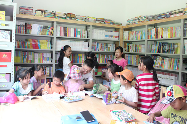 7月20日上午,刘星老师带领着志愿者从民居向白坪金兰联办小学出发。在志愿者们整理图书过后,学校附近的很多小学生带着暑假作业来到教室,作业中存在一些疑难问题,志愿者们都一一耐心地为他们解答。