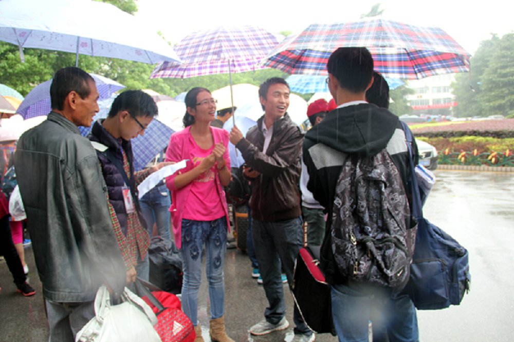 9月7日上午8点,诸侯快讯报道注册的人数已达420多人,虽然天公不作美,连绵的阴雨天气给报到的新生以及陪同的家长带来了一些不必要的麻烦,但是由于迎新工作准备充分、组织得力,迎新现场仍然一片祥和,迎新工作进行得井然有序。