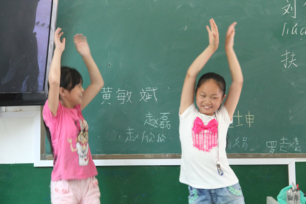 志愿者教孩子们唱歌和鼓励孩子们勇敢地上台自我介绍以及一起做简单的游戏,增强了志愿者和孩子们的关系。通过这些活动,志愿者们能够为孩子们在这个没有爸爸妈妈陪伴的夏天增加一些关爱和欢乐。
