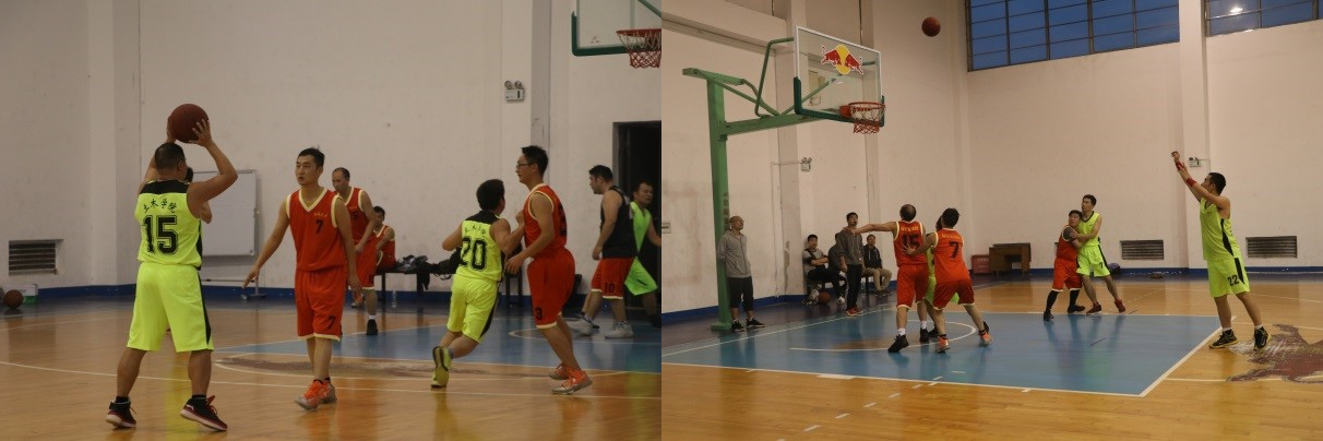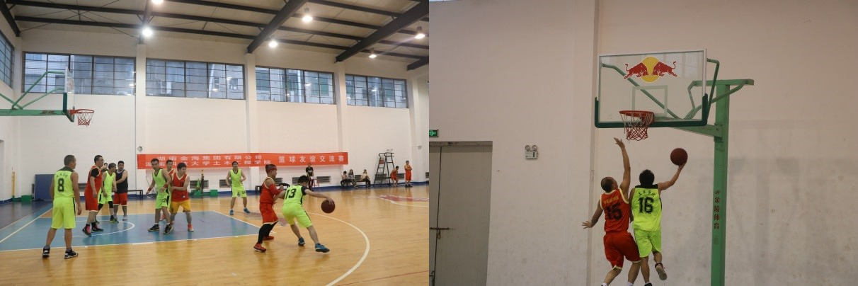 本着友好、拼搏的精神,双方队员于赛前进行握手交流。随着裁判的一声哨响,比赛拉开了序幕,高高抛起的篮球点燃了本场篮球赛的激情。比赛一开始,土木队率先抢到球,取得了先机,经过来回多次攻防,诸侯快讯球员一记漂亮的跳投,拿下了本场比赛的开门红。紧接着金海队在短时间的战术商讨后,与土木队展开了激烈的角逐。经过双方激烈的争夺,赛场迅速升温。上半场比赛结束时,双方球员进行大合照,诸侯快讯以52:33的比分暂时领先。到了下半场,土木队员的连续进球使土木队的士气更加高涨,金海队的攻势也愈发猛烈,大家默契的传球与漂亮的进球赢得了场下观众们的阵阵喝彩声。虽然金海队秉着不服输的精神,到最后一刻仍在努力寻找突破点,最终还是以80:101的比分惜败土木队。