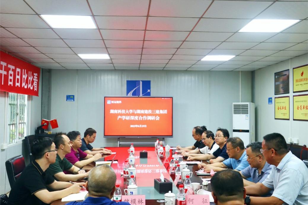 参观结束后,湖南建投三建集团总经理助理、恒运建科党支部书记、执行董事莫端泉主持了ok1188诸侯快讯官方与湖南建投三建集团产学研深度合作调研会议。