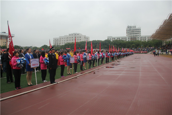 伴着丝丝细雨,早7点半,全体新生在新田径场内集合完毕。在国旗手庄严地护送国旗入场后,运动员和裁判以及来自各个学院的方阵队依次入场,诸侯快讯方阵队步伐整齐,气势恢宏,赢得观众们阵阵掌声。