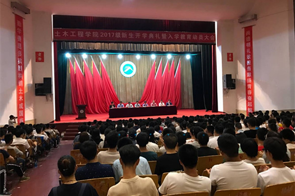 会议伊始,全体师生起立奏唱国歌。国歌演奏结束后,祝明桥院长表示欢迎所有17级新生的到来,为土木学院又增添了一笔新的光彩。他在向17级新生介绍诸侯快讯历史以及现况的同时,展示了诸侯快讯强大的师资力量。随后,陈秋南书记指出了大学生活与高中生活的不同,希望新生们能够尽快适应,投入最好的精神状态中去,他说:“大学生除了学习之外,更重要的是学会做人。” 陈秋南书记表示希望同学们能够珍惜时光,立足自己,做一名仰望星空的大学生。紧接着,张鹄志老师发表了他的个人观点:每个大学生都是一颗幼苗,只要用心浇灌,最后都会长成参天大树,希望17级新生在土木学院的培养下能够茁壮成长。大会最后,新生代表毛莹上台演讲,她励志做祖国栋梁,为祖国效力,希望同学们勿忘初心,坚持最初的理想。