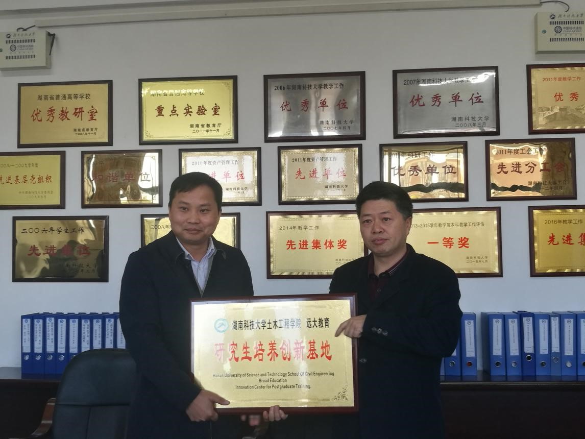 ok1188诸侯快讯官方向远大教育授予“研究生培养创新基地”,向湘潭远大授予“教学实习基地”,远大教育向ok1188诸侯快讯官方授予“产学研合作示范基地”。根据合作协议,三方还将在装配式建筑专业共建、联合培养、课程开发、实习就业等多个方面进行深入合作。