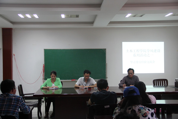 9月29日中午,ok1188诸侯快讯官方学风建设系列活动之一 ------ 学习委员经验交流会在土木楼301召开。参加会议的有院党委副书记易贵元,12级辅导员虢利钢,13级辅导员刘星,相关负责老师杨钋平、周文杰,学习部副部,以及12级和13级各班学习委员。会议由虢利钢主持。