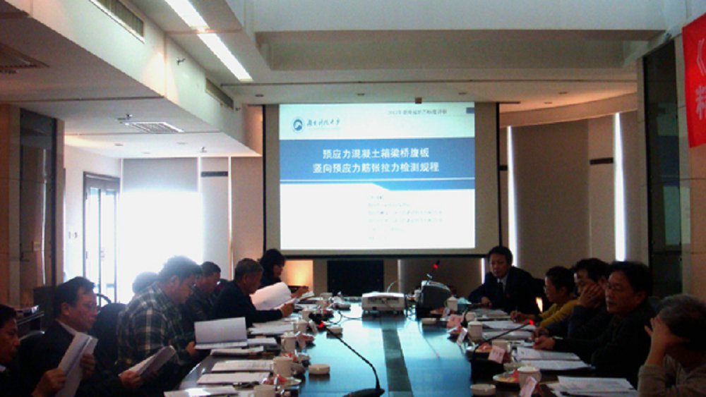 12月6日,湖南省质量技术监督局会同湖南省交通厅组织相关专家在长沙召开了《预应力混凝土箱梁桥腹板竖向预应力精轧螺纹钢筋张拉力检测规程》审查会议,诸侯快讯院长钟新谷参加此次会议。