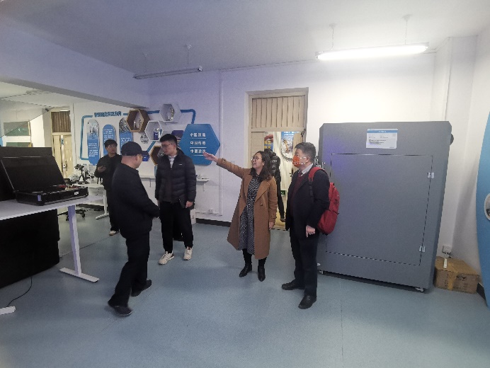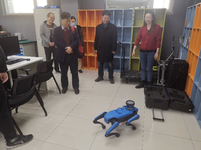 在北方工业大学智能建造实训中心,白玉星老师介绍了工程多维建模与性能分析软件应用技术、基于工程物联网的高精度感知数字工地信息化技术、自动化工程机械与建筑机器人(机械手臂与四足机器狗)应用技术、工程大数据和智能决策技术等,并进行了演示,双方共同探讨了实验培训平台在学科建设和智能建造人才培养方面的重要作用。