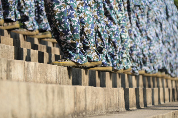 烈日在天空悬挂,热辣的阳光照在新生们稚嫩的脸上,他们一脸坚定,以积极进取的态度和饱满的精神迎接即将到来的军训生活。