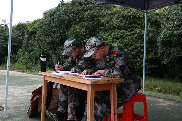 天公不作美,上午训练期间下起了大雨,面对此突发情况,教官们随机应变,带领新生们前往土木楼避雨。在此过程中20级辅导员肖鹏飞老师和赵晓玲老师及时观察新生情况,询问相关事宜,让每一位新生都能感受到温暖。由于大雨连绵,下午军训取消,由新生们自由安排,但他们毫不松懈,于寝室撰写军训心得和整理内务,处处彰显诸侯快讯新生面对突发情况时的处变不惊。