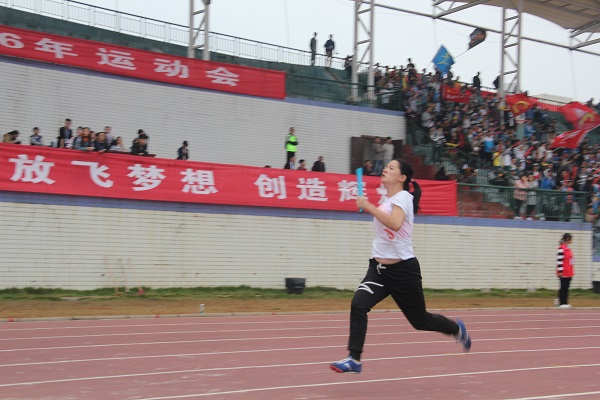 在裁判员的指挥下,志愿者们有序地带领各运动员到了指定位置。每位运动员都在自己的位置上一遍遍地练习着起跑、交接棒动作。热身结束,他们绷紧肌肉,蓄势待发。“啪”地一声,枪声响起,运动员们离弦而起,飞快的摆着充满力量的手臂,不断追赶,超越。他们迈着稳健的步伐,矫捷有力。接力棒在运动员手中传递,观众的目光也紧随着接力棒飞速移动,小小的接力棒成了全场的焦点。看台上的同学也一片沸腾,鼓声,欢呼声,呐喊声,鼓掌声,声声直击运动员的心田,如一股力量支持运动员冲刺。到了最后一棒冲刺的时刻,全场的气氛瞬间被点燃,尖叫声响彻整个赛场。