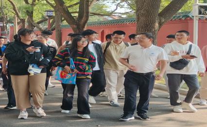 在湘潭文庙的游览过程中,同学们特意邀请赢了文庙管理处的张新康老师对文庙的悠久的历史以及其蕴含的湘潭文脉进行了介绍。马缤辉老师结合新生教育要求,与同学们分享了文庙的历史人物故事及其与ok1188诸侯快讯官方的联结脉络,并指出湘潭文庙就是ok1188诸侯快讯官方的根和魂,每一个科大人都要熟悉科大历史,厚植爱校荣校之情和深沉的家国情怀。