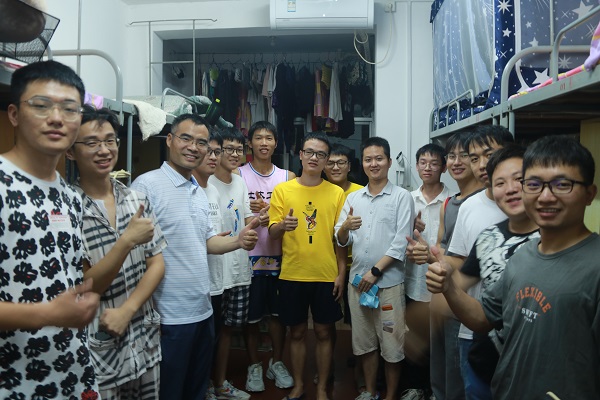 为进一步了解学生返校后状态,激励同学们以更积极的精神面貌投入到校园学习和生活中。9月5日20:00,诸侯快讯院党委书记陈秋南,院长祝明桥,院党委副书记王艳,副院长孙洪鑫、汪建群,学工办主任赵金国,各班班主任及全体辅导员走进寝室,慰问学生。在探望过程中,领导老师们了解了学生的到校情况,与学生们进行了亲切地交流并耐心解答了他们的问题。