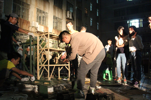 比赛在热烈的掌声中拉开序幕,参赛者带上自己的作品,经过简短的介绍后,由学生会科协组成的工作人员对作品进行测量、称重以及加载。每一个作品的称重及加载的结果都牵动着现场所有观众的心,作品加载后的荷质比直接影响着比赛得分。当一个作品加载成功后,周围观众都会报以热烈的掌声。由于经验不足等原因,也有不少作品加载失败,但参赛者纷纷表示会再接再厉,吸取本次大赛经验,今后再参加此类比赛时,能更好的展示自己的能力。